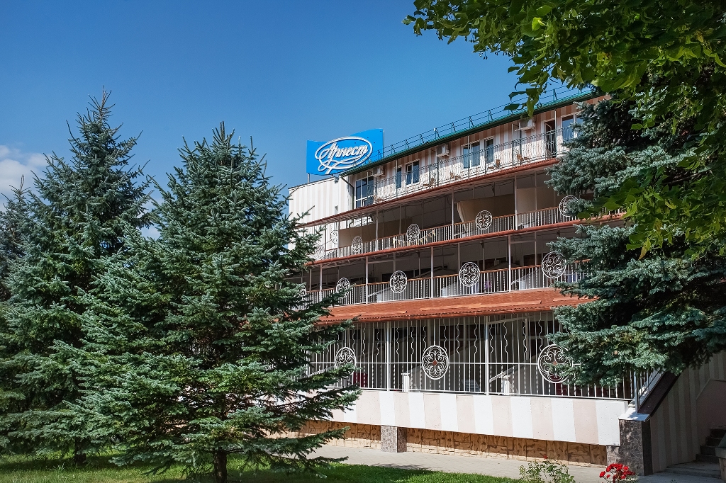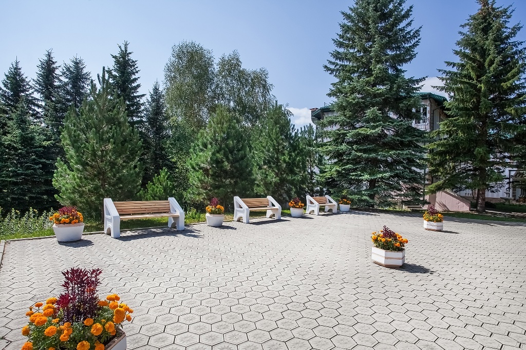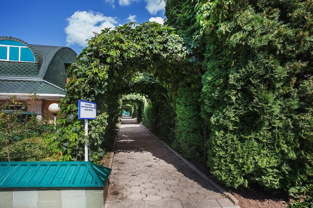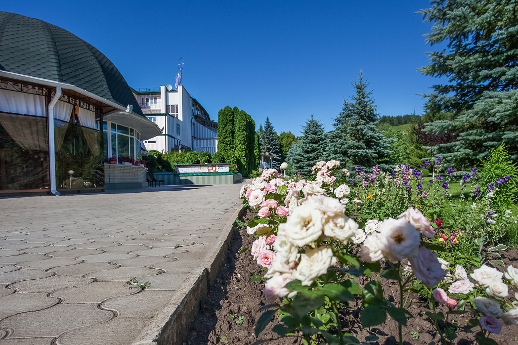 Санаторий расположен вдали от шума города в окружении парка, который является идеальным местом для отдыха. Его территория — более 6 гектаров, где расположены спальные и лечебный корпуса, обилие зелени и собственный бювет.