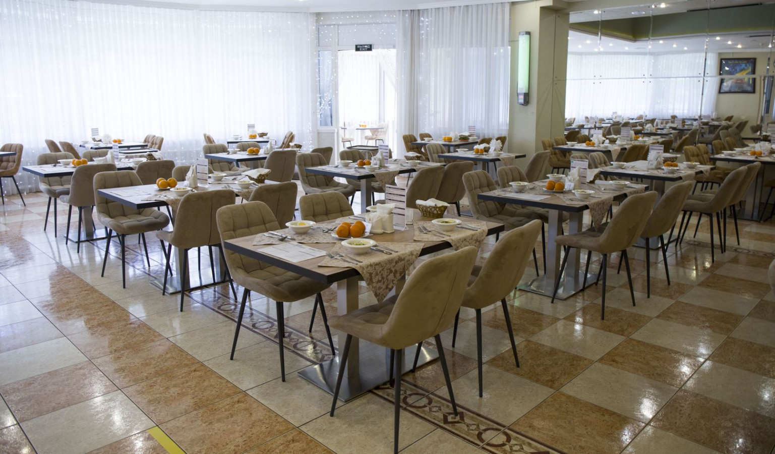 Вас встретит красивая сервировка столов и разнообразная кухня санатория.